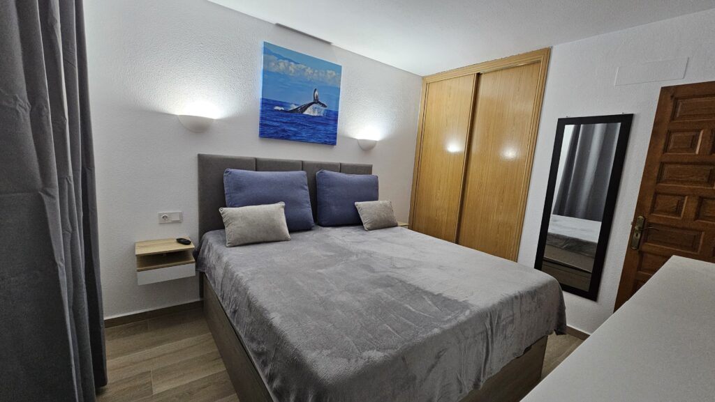 1 bedroom with a double bed (high-quality mattress), storage cabinets with drawers and built-in wardrobe, TV with more than 100 channels