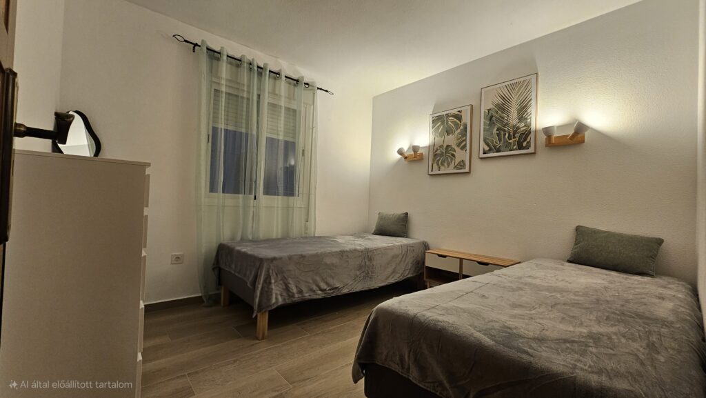 1 bedroom with two single beds, which can be combined into a double on request, storage cabinets with drawers and built-in wardrobe