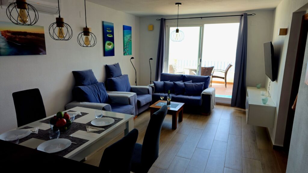 Wake up to one of the most stunning panoramic views on the Costa Blanca — a breathtaking 180° sea view with Ibiza visible on the horizon. Enjoy your morning coffee or a glass of wine on the private balcony while taking in the deep blue of the Mediterranean.